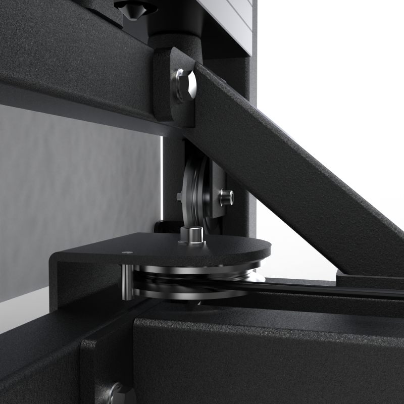 - Cable y poleas. Construcción de hilos 7x19, cable de acero recubierto de nailon lubricado que cumple con las especificaciones para un entrenamiento intenso. Las poleas de aluminio cuentan con cojinetes sellados para una mayor seguridad, mientras que los brazos pivote poseen rodamientos de aluminio, lo que ayuda a un movimiento suave y a la vez firme. Además, son muy resistentes a la tracción y al desgaste.